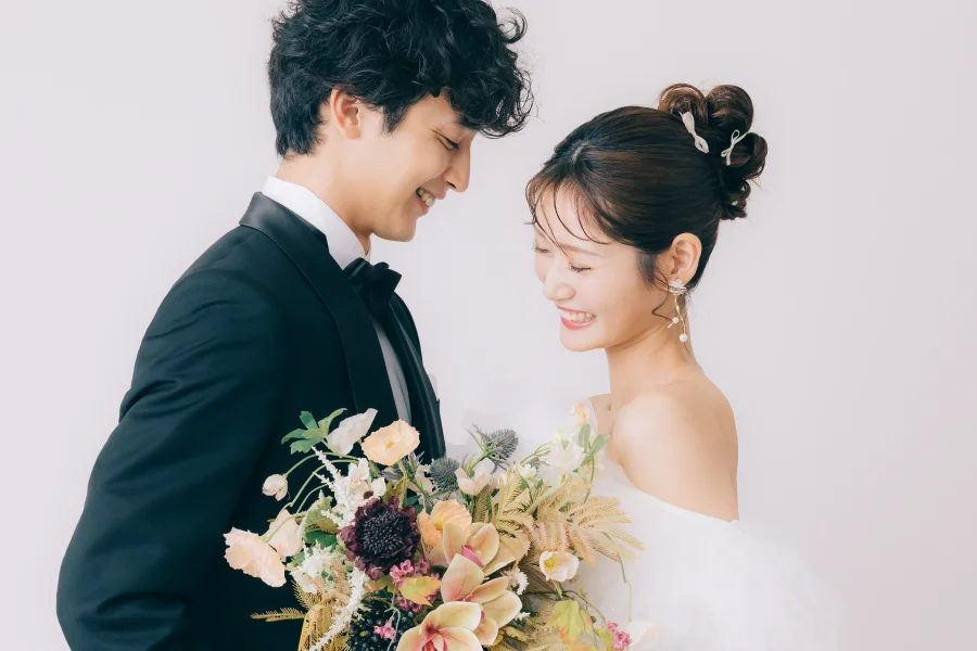 また、衣裳や撮影イメージに合わせて、最適なポジションやポーズを柔軟にご提案。おふたりの自然な表情の引き出すのも得意です。
