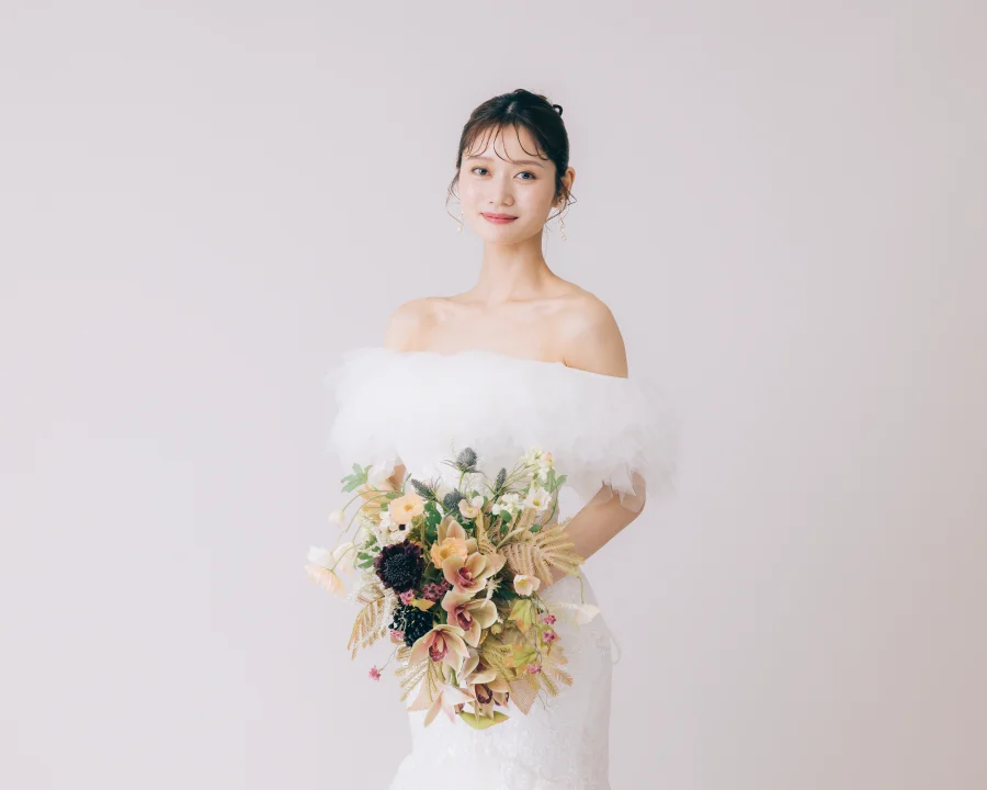 撮影場所や季節に合わせ、一番美しく見えるスタイルを、花嫁様のご希望を柔軟にくみ取ってかたちにできるヘアメイクアーティストが担当いたします。