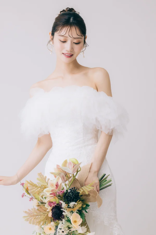 スタジオ撮影ならではの作り込まれた光に加えて、丁寧な色調補正でさらに美しく仕上げます。